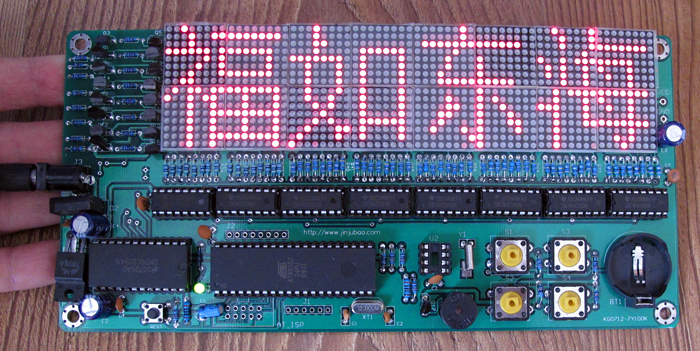 ;顯示字用查表法,不占內(nèi)存,字符用16*16共陽(yáng)LED點(diǎn)陣,