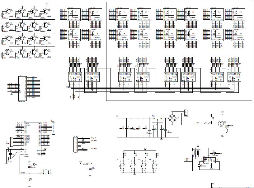 硬件電路大致上可以分成單片機(jī)系統(tǒng)及外圍電路、列驅(qū)動(dòng)電路和行驅(qū)動(dòng)電路三部分