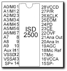 美國ISD公司的2500系列芯片,常見的按錄放時間40秒、60秒和120秒分成ISD2540、2560和25120多個品種,該系列產(chǎn)品的電路原理圖和控制結(jié)構(gòu)完全相同。ISD2560系列和1400系列語音電路一樣,具有抗斷電、音質(zhì)好,使用方便,無需專用的語音開發(fā)系統(tǒng)等相同優(yōu)點。它的最大特點在于片內(nèi)E2PROM容量為480K(1400系列為128K),所以錄放時間長;有10個地址輸入端(1400系列僅為8個),尋址能力可達1024位;最多能分600段;設(shè)有OVF(溢出)端,便于多個器件級聯(lián)。