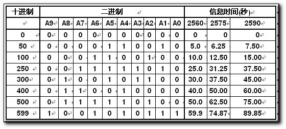 2500系列最多可分為600段,只要在分段錄/放音操作前(不少于300納秒),給地址A0~A9賦值,操作就從該地址開始。2500系列地址空間是這樣分配的:地址0~599作為分段用(見下表),