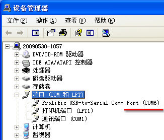 點擊下載PL2303.RAR解壓縮運行SETUP.EXE進(jìn)行安裝,驅(qū)動安裝完成后,將模塊的USB插頭插入電腦USB接口即可。鼠標(biāo)右鍵點擊桌面的“我的電腦”=》屬性=》硬件=》設(shè)備管理器=》端口 看下圖中是否出現(xiàn)紅色橫線所指的PL2303虛擬的COM6,(一般為COM3,不同電腦端口號可能不同)如果出現(xiàn)說明模塊是好的,并且驅(qū)動程序也安裝成功了。