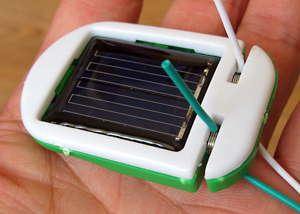 當(dāng)然太陽能還是非常微弱的,我們實(shí)際測量了一下,一般陽光下太陽能電池的開路電壓約1.2V,短路電流約40毫安,如果玩膩了還能改裝一下,用3V左右的電池供電,玩具能跑得飛快哦,可以看我們拍攝的視頻。