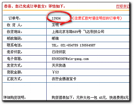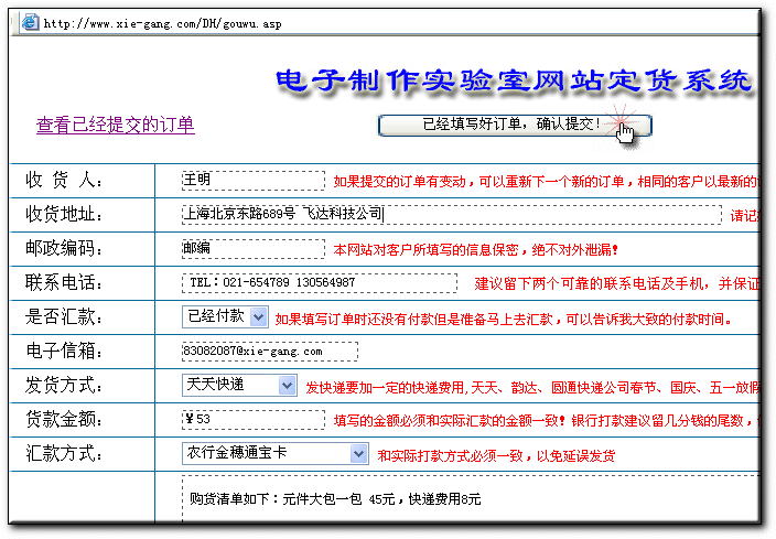 正確填寫完畢,請(qǐng)點(diǎn)擊“已經(jīng)填寫好訂單,確認(rèn)提交”按鈕提交訂單