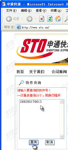 我們可以登陸快遞公司的網(wǎng)站進(jìn)行快件追蹤查詢(快遞公司一般是晚上發(fā)貨,最快也要第二天早上才能查詢到,有些更新慢的公司甚至?xí)?4小時(shí)后登陸更新),先點(diǎn)“申通快遞查詢”進(jìn)入申通快遞公司的網(wǎng)站,在白色箭頭位置輸入貨單號(hào)碼,點(diǎn)擊“查詢”進(jìn)行查詢。