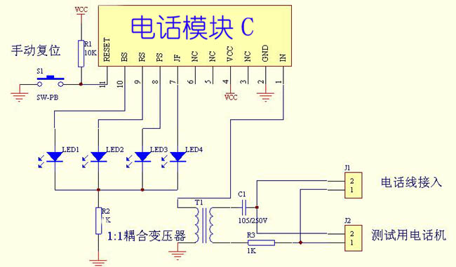 電話接口模塊A是專門用于研制開發(fā)、生產(chǎn)配套的完整電話接口功能模塊。該產(chǎn)品是由專業(yè)從事話機(jī)通訊多年的研發(fā)人員精心設(shè)計、開發(fā)研制的產(chǎn)品。該產(chǎn)品實際電路已經(jīng)應(yīng)用在批量投產(chǎn)的智能紅外報警系統(tǒng)中。