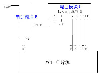 接收DTMF信號可從模塊的12——16腳的任意一腳到DTMF解碼芯片。