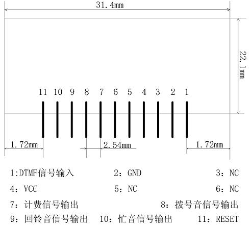 電源電壓:+5V 電流:6-10mA 封裝形式: DIP32腳 環(huán)氧樹脂密封,信號輸出方式: 直接由內(nèi)部自帶CPU串行口采用異步通信方式輸出來電數(shù)據(jù)。