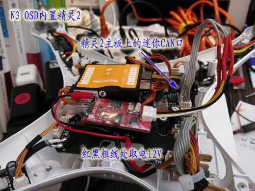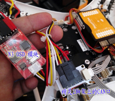 現(xiàn)在說(shuō)下高級(jí)些的加裝方法:把N3 OSD模塊內(nèi)置到精靈2內(nèi)部,并從內(nèi)部取電。