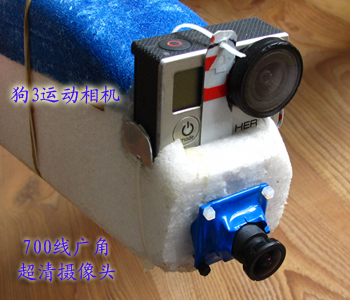 FPV遠航時需要保證一定的飛行高度例如200米以上,這時如果攝像頭水平安裝時畫面中會出現(xiàn)大量明亮的天空,導致自動白平衡啟動導致畫面很暗,這時我們設(shè)計了攝像頭俯仰舵機云臺,可以垂直指向地面,能保證畫面的對比度,還能讓FPV遠航變得非常有趣,換成長焦鏡頭后能看清地面的房屋,云臺也能更好地實現(xiàn)跟蹤目標。