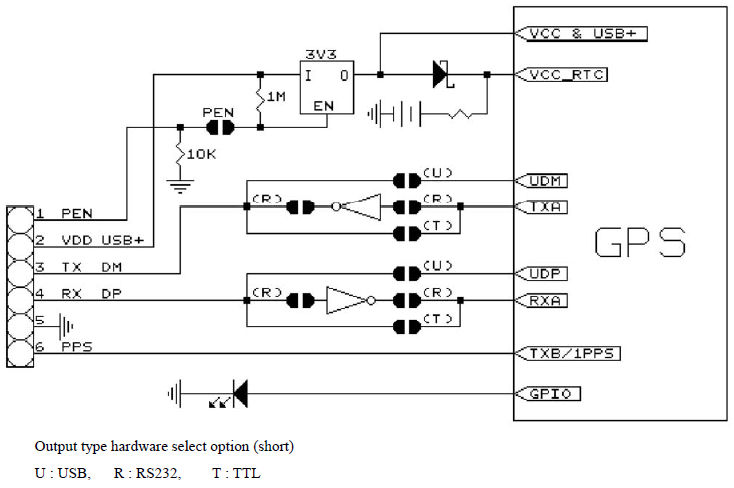 我們使用GPS模塊時其實非常簡單,一般只用到三根輸出線,第一腳紅線接3.5~5.5V的直流正電源,第五腳黑線是電源地,第二腳黃線是GPS的輸出線,它是TTL電平的串口信號,高電平大于2.4V,低電平小于0.4V,輸出驅(qū)動能力為2毫安,一般可以直接和單片機接口,如果希望用電腦的串口調(diào)試助手軟件調(diào)試時,必須加MAX232模塊組成的電平轉(zhuǎn)換電路,當然也可以用我們提供的采用PL2303的USB轉(zhuǎn)串口模塊,模塊的第六腳綠線是秒信號輸出,每秒都會輸出一個10毫秒寬度的0.2V左右的脈沖信號,一般用于授時用途。模塊的RXA和RXB端口客戶一般不用不需要考慮它。