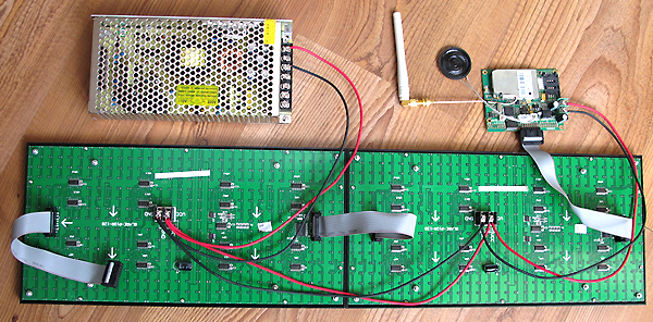 我們的產(chǎn)品安裝也很簡單,但是一定要細(xì)心謹(jǐn)慎,千萬不能結(jié)錯線。這是5V20A的開關(guān)電源,每個LED屏之間通都過數(shù)據(jù)線串連,5V的電源分別給LED屏供電,我們的GSM控制板也用5V供電。