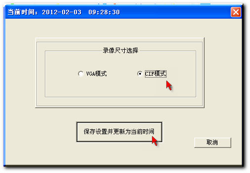 將設(shè)備的USB口連接到電腦,再運(yùn)行光盤中UserSet.EXE,你可以進(jìn)行錄像分辨率選擇和系統(tǒng)時(shí)間更新。