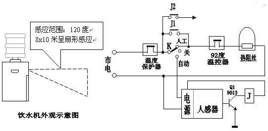 其特點(diǎn)是不必?fù)?dān)心忘了開關(guān)機(jī),避免“燒死水”產(chǎn)生有害化學(xué)物質(zhì)影響身體健康的現(xiàn)象。適用于家庭、會(huì)議室、接待室以及公眾場(chǎng)所使用的飲水機(jī),另外還可利用繼電器另一組接點(diǎn),定期給冷水和杯子柜采用紫外線或者臭氧消毒。