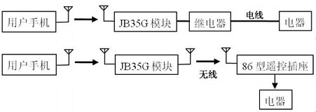 ⑶JB35GK模塊還可以增加了一個(gè)315M無線發(fā)射頭。當(dāng)JB35GK收到短信遙控8路繼電器的指令后,一方面通過傳統(tǒng)方式直接驅(qū)動(dòng)與模塊相連的繼電器,另一方面又通過315M無線發(fā)射頭發(fā)出一個(gè)無線編碼信號(hào),能夠在50米內(nèi)控制86型220V無線遙控插座,再由86型220V無線遙控插座驅(qū)動(dòng)家用電器的開關(guān)。一套JB35GK能增配8個(gè)86型220V無線遙控插座。這樣就能避免布線的麻煩,真正做到無線控制。