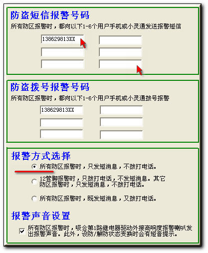 9。報(bào)警短信內(nèi)容和號(hào)碼的設(shè)置可以用電腦軟件改寫,也可以用手機(jī)發(fā)短信來改寫。