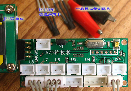 A/D轉(zhuǎn)換板上有5路溫度測量通道L1~L5,只要接上DS18B20溫度傳感器就能測量5個點的溫度。但在一些工業(yè)應(yīng)用中,需要測量更多路的溫度,這時我們可以把U1~U8也擴展成溫度測量,這樣一塊A/D轉(zhuǎn)換板就能同時測量13路溫度。本例就是用于大慶油井的多路油管的多點溫度測量實例。