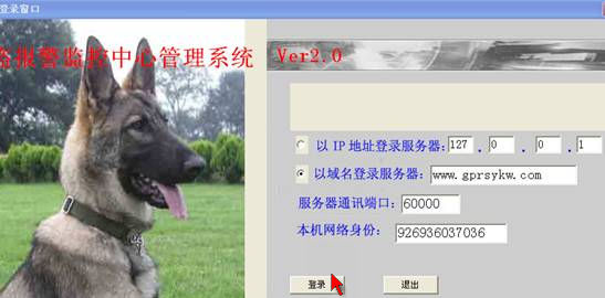 運(yùn)行“Internet防盜報(bào)警監(jiān)控中心管理系統(tǒng)”軟件,進(jìn)入“系統(tǒng)登陸窗口”,所有參數(shù)都不要改動(dòng),直接點(diǎn)擊“登陸”按鈕即可進(jìn)入主窗口。