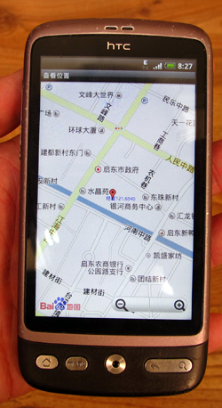 2)在“測(cè)量”界面中按“GPS定位”也能顯示位置地圖(實(shí)際是基于GSM基站定位,誤差200米左右)。