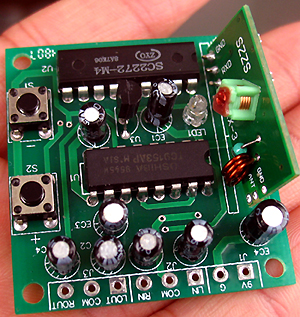 這是我們最新開發(fā)的無線遙控音量模塊,它克服了紅外遙控方向性強、紅外接收頭必須露出機殼、加裝困難的缺點,并且采用日本東芝高性能電子音量專用芯片TC9153AP。