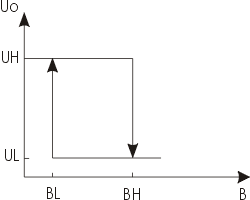 霍爾開關的輸入端是以磁感應強度B來表征的,當B值達到一定的程度(如B1)時,霍爾開關內部的觸發(fā)器翻轉,霍爾開關的輸出電平狀態(tài)也隨之翻轉。輸出端一般采用晶體管輸出,和接近開關類似有NPN、PNP、常開型、常閉型、鎖存型(雙極性)、雙信號輸出之分。