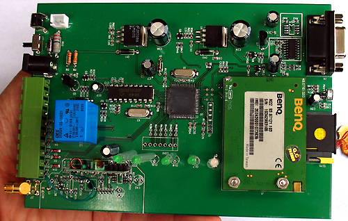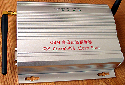 這就是精美的鋁合金主機(jī),它有兩根天線,一根是GSM天線,用于收發(fā)彩信和撥打電話,靠近綠色接線柱的是315MHZ報(bào)警接收天線,用于接收遙控器指令和無線門磁和無線紅外的報(bào)警信號。