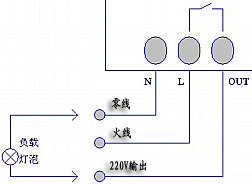 接線方法:L接火線(L內(nèi)部接繼電器);N接零線;接地連大地