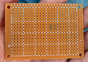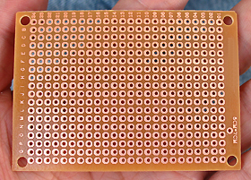這是一種使用很方便的萬能試驗板,大小為70X50毫米,這種板的孔距都是標準的100mil(2.54毫米)距離,可以方便地插入集成電路芯片或者其它元件,焊接很方便,電路連線可以直接借用元件的引腳或者用單股硬導(dǎo)線連接。這種板剪裁還特別方便,用美工刀劃一下,然后放在桌子邊緣一折就OK了!這種實驗板的焊盤不容易脫落,比較好用。