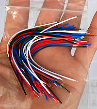 在電路搭接和調(diào)試的過程中經(jīng)常需要一些試驗連線,我們采用優(yōu)質(zhì)多股線制作的試驗焊接連線,線的兩端都已經(jīng)剝?nèi)ネ馄げ⑸襄a,可以非常方便地插入我們的點陣實驗板上進行焊接,我們提供紅、黑、白、藍四種顏色,每種10根共40根,不同顏色可以代表不同含義,如正電源用紅色、地線用黑色、信號線用藍色等,可以提升電子制作的檔次,便于調(diào)試。