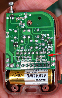 最右邊的是第1個地址碼,最左邊的是第8個地址碼,設置時需要用到電烙鐵,假設把第一腳用焊錫和H短路,就是把地址碼的第1腳設置為高,假設把第一腳用焊錫和L短路,就是把地址碼的第1腳設置為接地,如果不動就是設置成懸空。增配的遙控器顏色為桃木色,按鍵符號ABCD。