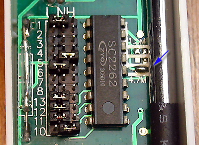 答:增配無線門磁比較容易,振蕩電阻建議選4.7M,需要注意8位地址碼可以任意編碼(不建議全部懸空)10~13的4位數(shù)據(jù)碼請選0001、0010、0100、1000以外的任何編碼,這4個是遙控器專用的。