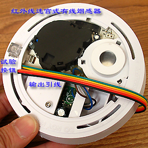 這是有線(xiàn)火災(zāi)煙霧傳感器的內(nèi)部結(jié)構(gòu),它采用紅外線(xiàn)迷宮式反射檢測(cè)模式,正常工作時(shí),紅外發(fā)射管發(fā)出的紅外線(xiàn)無(wú)法被紅外接收管檢測(cè)到,當(dāng)發(fā)生初期火災(zāi)時(shí)煙霧會(huì)彌漫到傳感器迷宮室內(nèi)時(shí),煙霧的光線(xiàn)漫反射效應(yīng)會(huì)使部分紅外線(xiàn)反射到紅外接收管中,并立即報(bào)警。