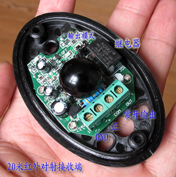 這是一種可以適合室外工作的紅外對射開關(guān),具備一定的防水和抗環(huán)境光線干擾的性能,檢測距離為20米,直流12~24V供電,比較安全,輸出是繼電器常開轉(zhuǎn)常閉觸點,靈活方便。