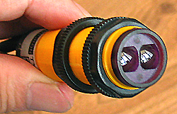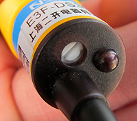 這是一種應(yīng)用最為廣泛的光電開關(guān),它的直徑為18毫米,固定時只要在設(shè)備外殼上打一個18毫米的園孔就能輕松固定,長度約75毫米,背后有工作指示燈,當(dāng)檢測到物體時紅色LED點亮,平時處于熄滅狀態(tài),非常直觀,引線長度為100毫米。