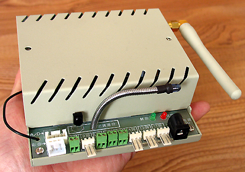 首先裝上并旋緊白色的GSM天線,松開外殼頂端的兩個固定螺絲取下上蓋,將無開機密碼并且必須開通短信/彩信功能的移動GSM手機卡(向一側推一下再向上翻開SIM卡座)裝入SIM卡座并鎖定好,將12V/1A內正外負的直流穩(wěn)壓電源(建議選用我們提供的電源 10元一個)插入JB68的黑色電源插座中,這時JB68開始登陸GSM網絡,一般30秒后登陸GSM網絡成功,JB68鐵殼側面的黃色LED燈常亮,這時你撥打設備的手機卡號應該能撥通。