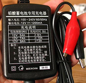 這樣當有市電時充電器負責我們系統(tǒng)的靜態(tài)耗電和蓄電池的自放電,一旦停電時自動由蓄電池供電,市電恢復后由充電器對蓄電池充電恢復容量。這種方案還可以省略12V1A的交流開關電源。蓄電池既笨重又不能空運我們建議客戶本地購買,一般摩托車配件商店都有。