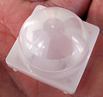 這款透鏡分成上下兩個(gè)部分,下部的園環(huán)可以直接戴在RE200B一類的熱釋電元件上,上部的透鏡直徑只有13毫米,便于在外殼上開孔。