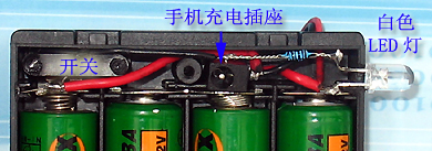打開手機充電器的外殼,先將電源線留2厘米剪斷,然后焊接一個小號電源插座 用熱溶膠固定在外殼上,再將電源線焊接一個小號電源插頭 注意極性不要搞錯,可以定義為內正外負!在電池盒內的縫隙處安裝一個小號電源插座 和4節(jié)鎳氫電池的正負極連接(內正外負),這樣手機電源線的小號插頭就可以插入太陽能充電器的小號插座中進行充電了,因為有鎳氫電池的原因,即使沒有陽光也能進行充電。如果加裝高亮度白色LED還能做成一個小手電哦,可以從電池正電源接LED正極,LED負極接一個50歐姆的限流電阻接原來電池盒上的開關接電池負極即可,見下圖: