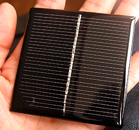 這款太陽能電池板,每片重量約30克,輸出電壓5.5V符合USB的電壓標準,給單節(jié)鋰電池的手機、MP3等電池電子產品充電時可以若干片太陽能板直接并聯(lián),然后接入USB母插座的對應電源線引腳,然后通過USB線進行充電,通常用4塊太陽能板并聯(lián),在陽光理想的情況下約3~4小時可以充滿手機電池。如果直接對電池充電需要串連一個防止反向電流的隔離二極管。
