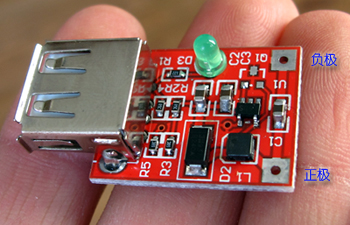 5.5V/140毫安的太陽能電池板的輸出電壓直接給手機等設備充電,這樣存在一個缺點就是因為陽光強弱或者太陽能板角度等原因會使電池的輸出電壓小于5V造成無法充電,如果我們把太陽能電池的輸出電壓通過升壓模塊后再連接充電設備,這樣只要太陽能板有輸出電壓就可以正常充電,大大提高了充電效率,而且它是USB母頭輸出的,所以通過USB數(shù)據(jù)線就能連接其他電子設備進行充電。