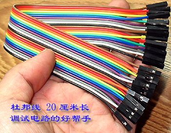 產(chǎn)品2:調(diào)試電路用杜邦免焊接連接線(一捆20根 優(yōu)惠價(jià):6元,每根:0.3元一根)