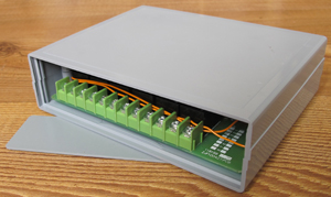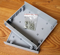 外殼的外形尺寸為153*120*42毫米,內(nèi)部空間約143*107*30毫米,上下外殼通過(guò)四個(gè)長(zhǎng)螺絲固定,非常牢固可靠,內(nèi)部有PCB固定的自攻螺絲塑料柱8個(gè)配4個(gè)支撐塑料柱和4個(gè)短螺絲,外殼的顏色為藍(lán)灰色,側(cè)面的塑料擋板是活動(dòng)插接的,可以根據(jù)需要取下來(lái),站長(zhǎng)用它開(kāi)發(fā)過(guò)12鍵A型接收板。